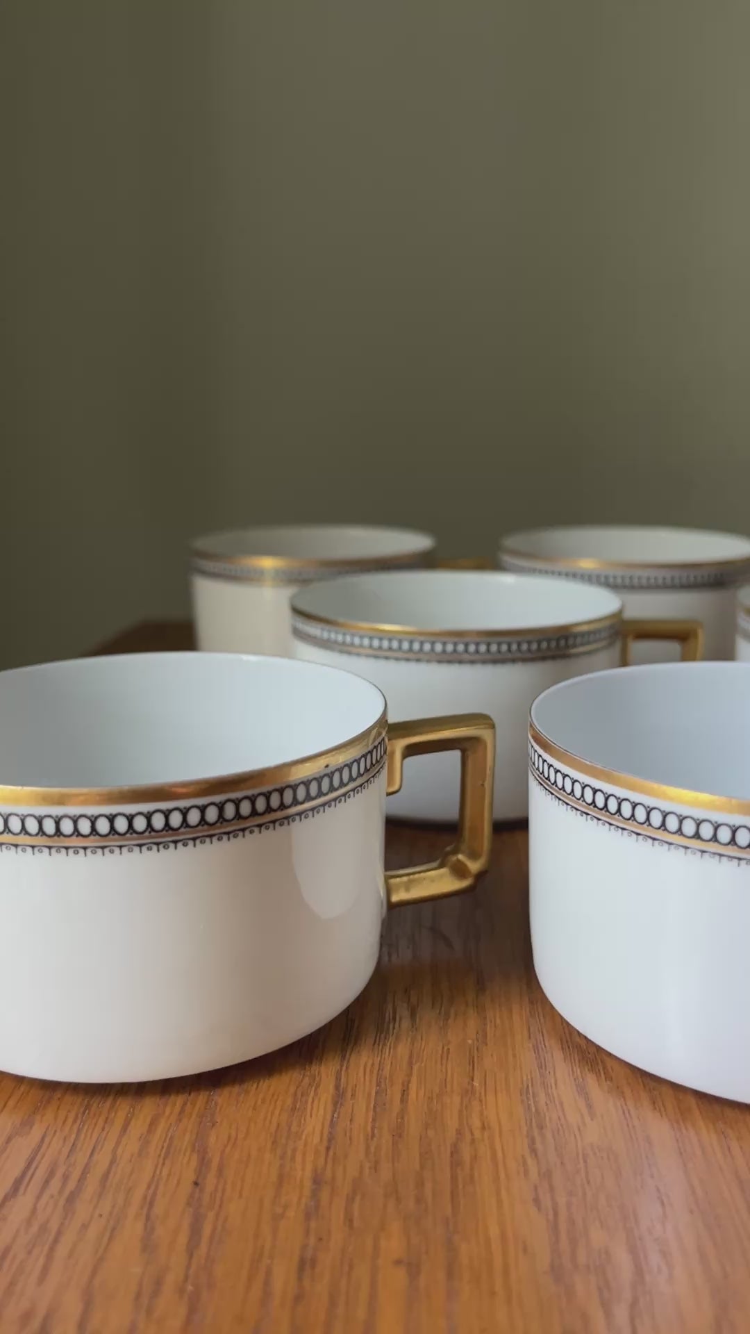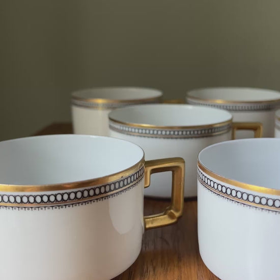 Cozy up on the couch and sip on your favorite tea in style with these delicate teacups. This collection features 8 Heinrich & Co Imperial teacups. Each teacup is made of porcelain and hand painted with gold trim and a Greek key design.