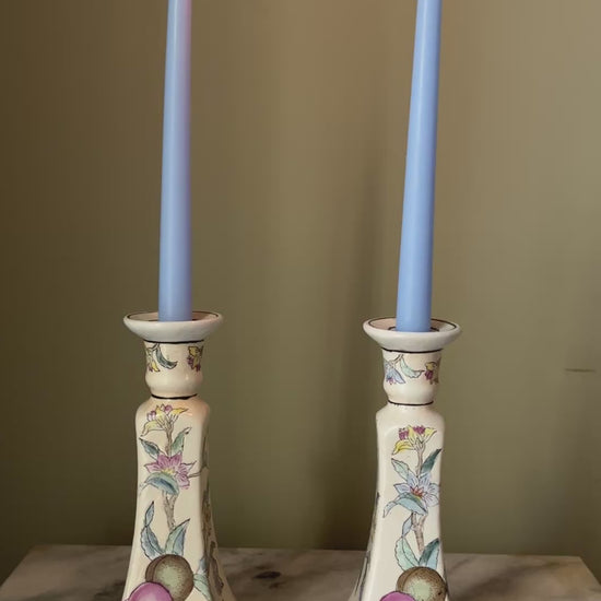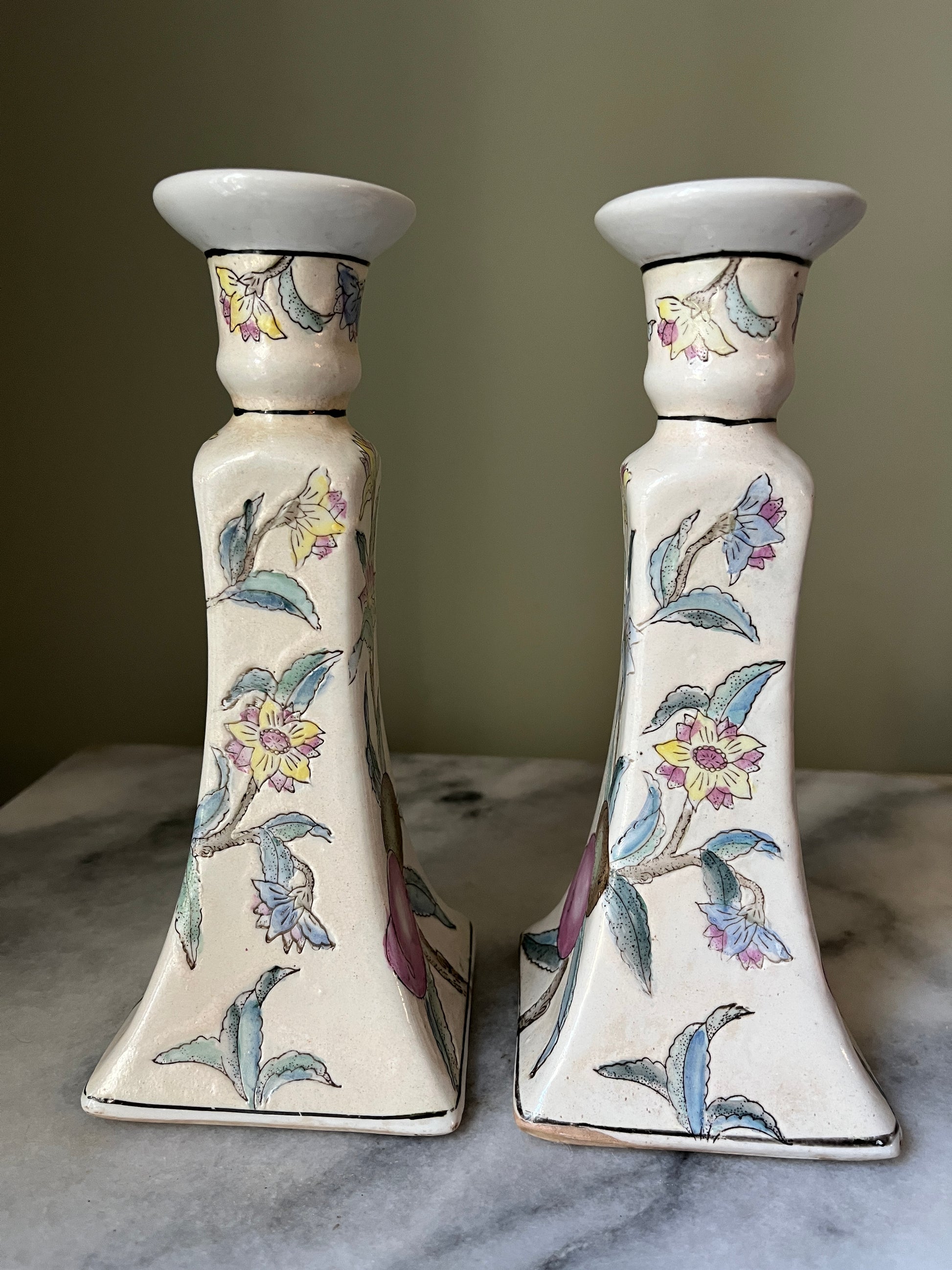 Vintage WBI Asian Porcelain Hand Painted Candlesticks