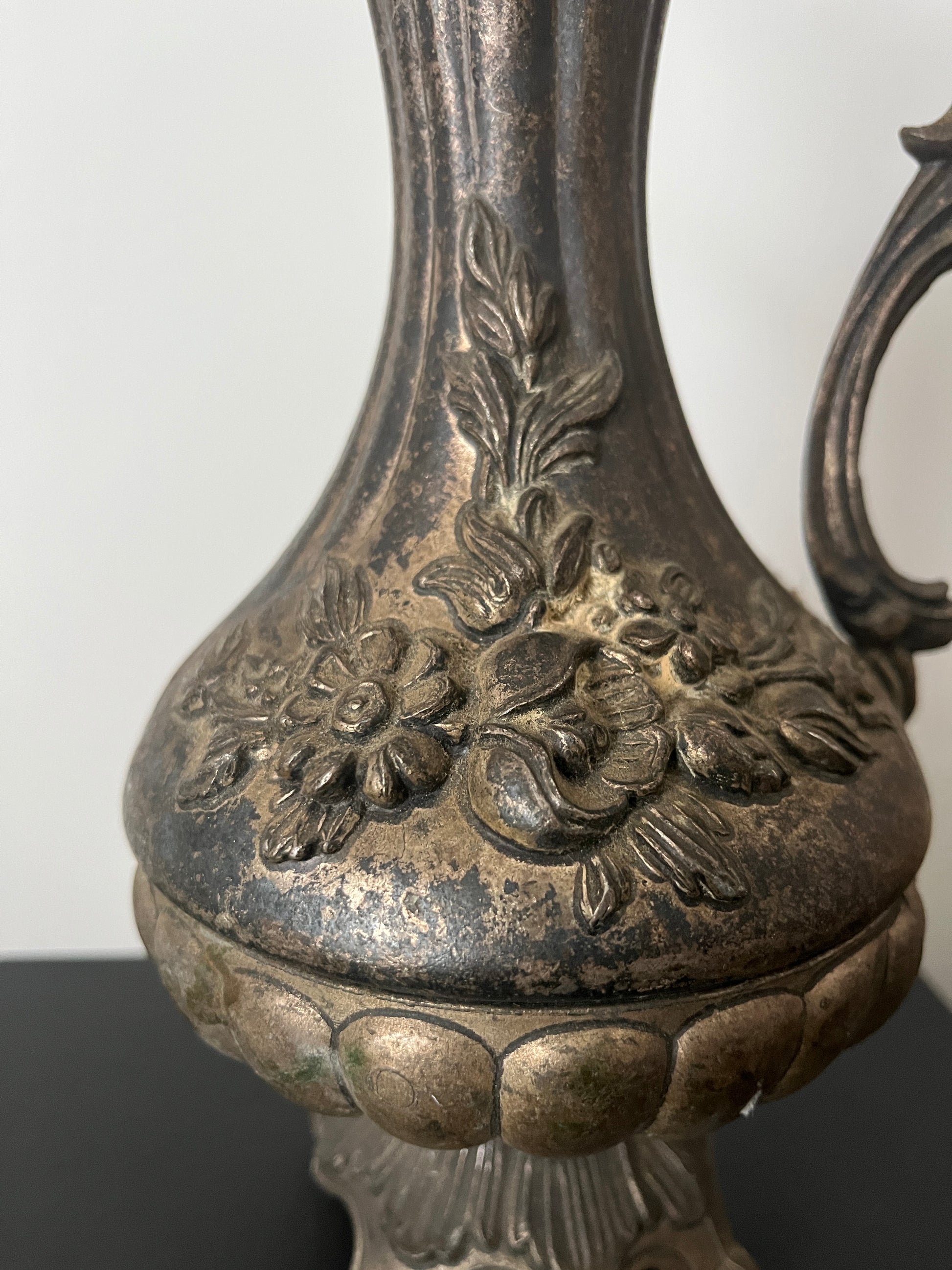 Vintage Italian Silver-Plated & Pewter Pitcher Vase