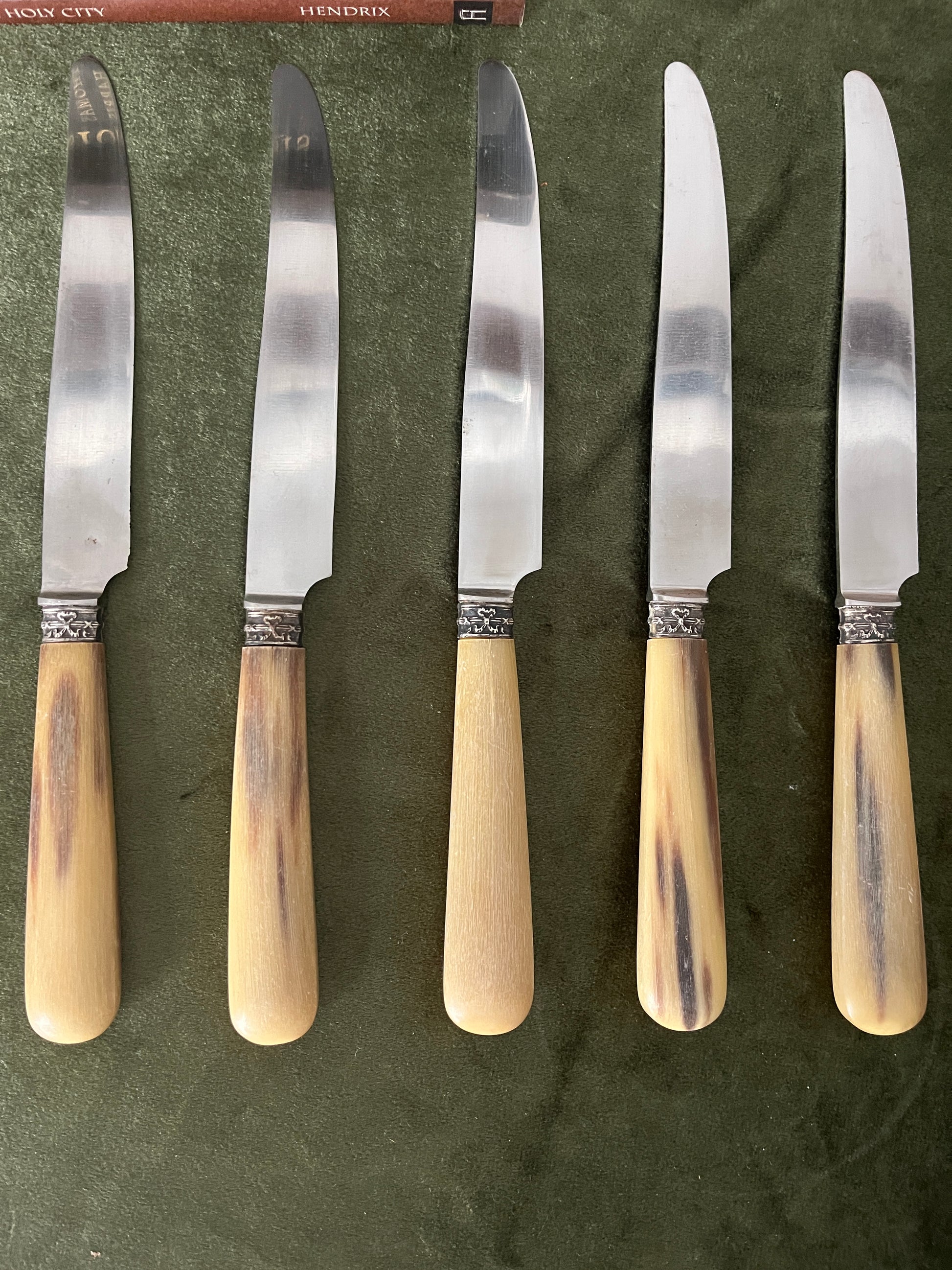 Vintage Stainless Steel French Knife Set With Horn Handles