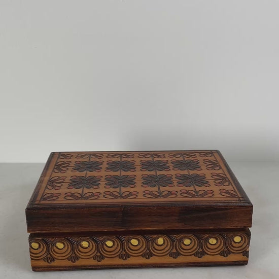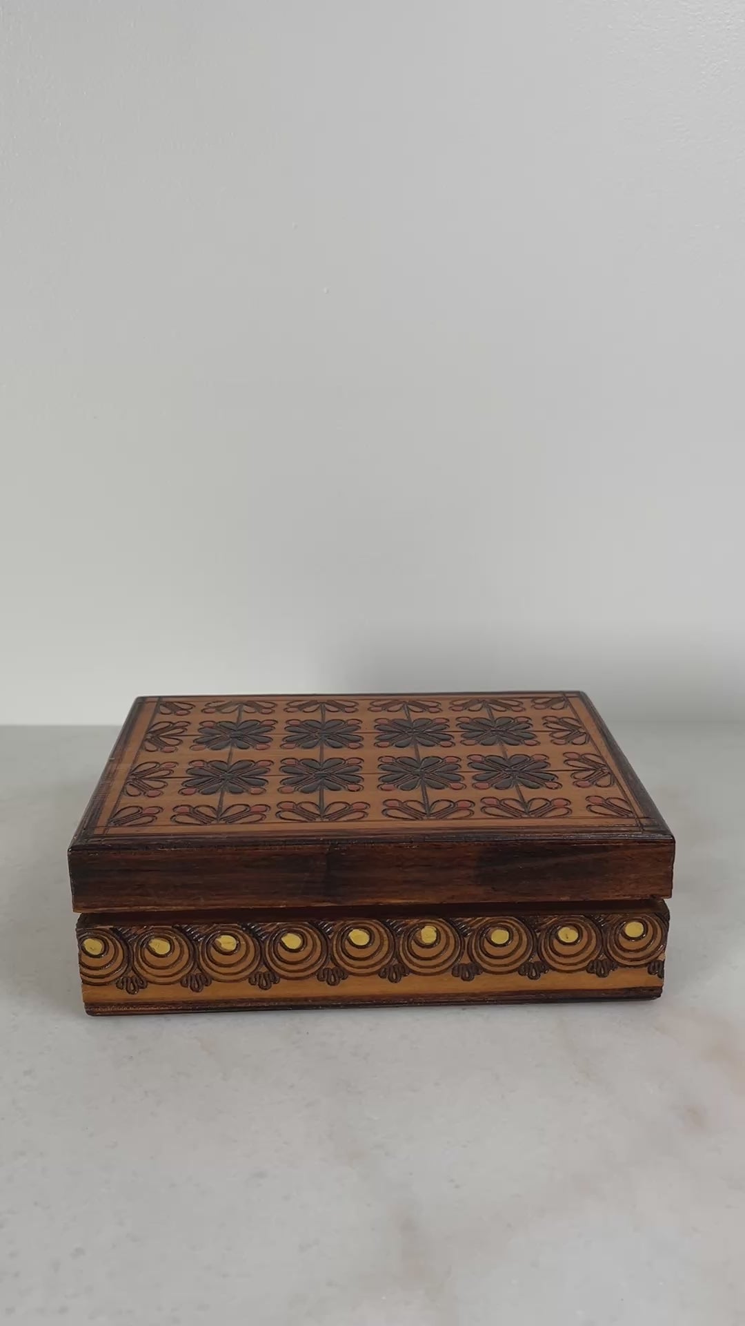 Pyrography is the art of decorating materials with designs created by burning or charring. This delicate wooden box has been intricately engraved with floral patterns. I’ve collected boxes like these through the years to store my most cherished keepsakes. Think handwritten notes from loved ones, photobooth strips and poloroids from all those goofy nights spent with your favorite people, and those little trinkets that have such fond memories but no great place to live. It becomes its own little time capsule on my shelf filled of happiness and nostalgia.